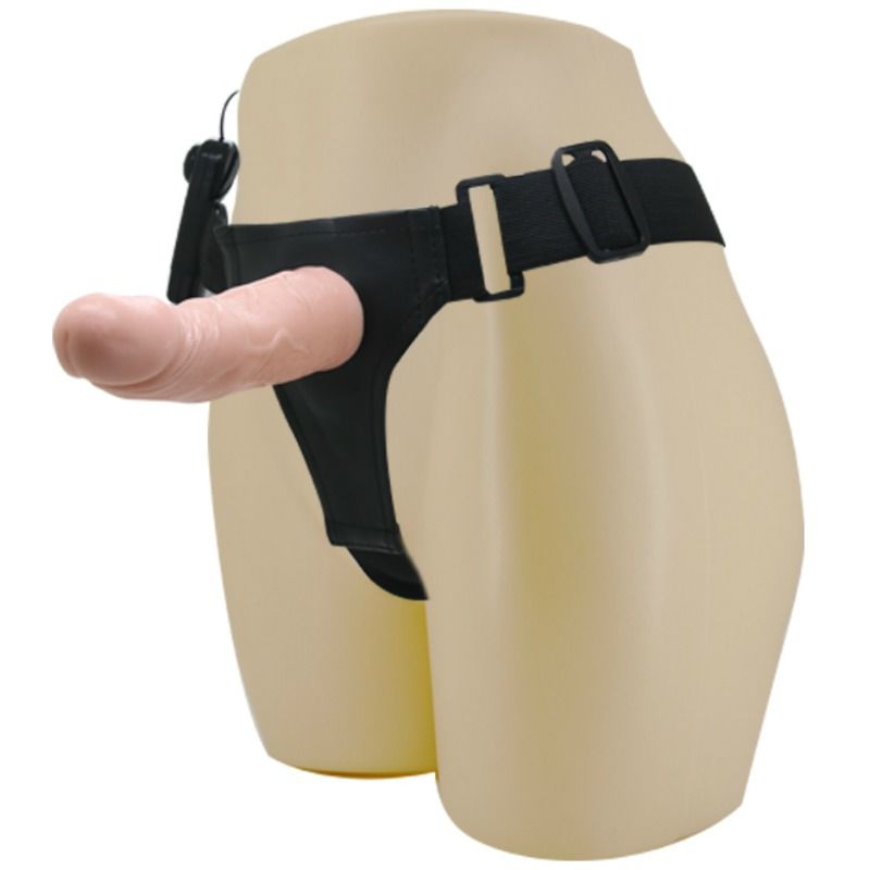 Este strap-on con dildo hueco y vibración de 15 cm se presenta como un elemento perfecto para aquellos hombres que quieran seguir dando placer a su pareja después de haber eyaculado o que tengan problemas de disfunción erectil. Su dildo realístico, es hueco, y en la punta hay una bala que vibrará accionada por el mando y hará que la acción continue. Su cinturón además es muy cómodo y ajustable a casi todas las tallas